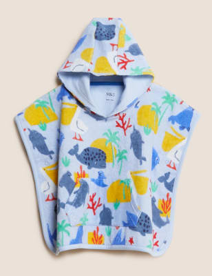 Cotton Rich Sealife Hooded Towelling Poncho 0 3 Yrs M S Collection M S